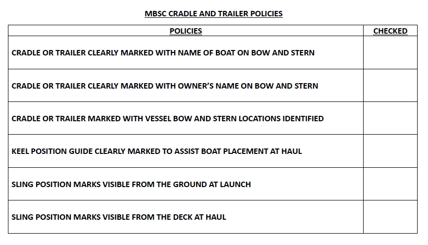 Launch and Haul information is available on the Notice Board including important dates and parking restrictions. It is members’ responsibility to be aware of this information.
